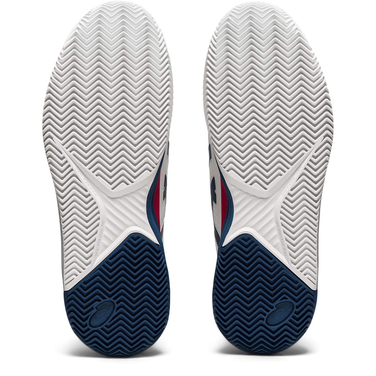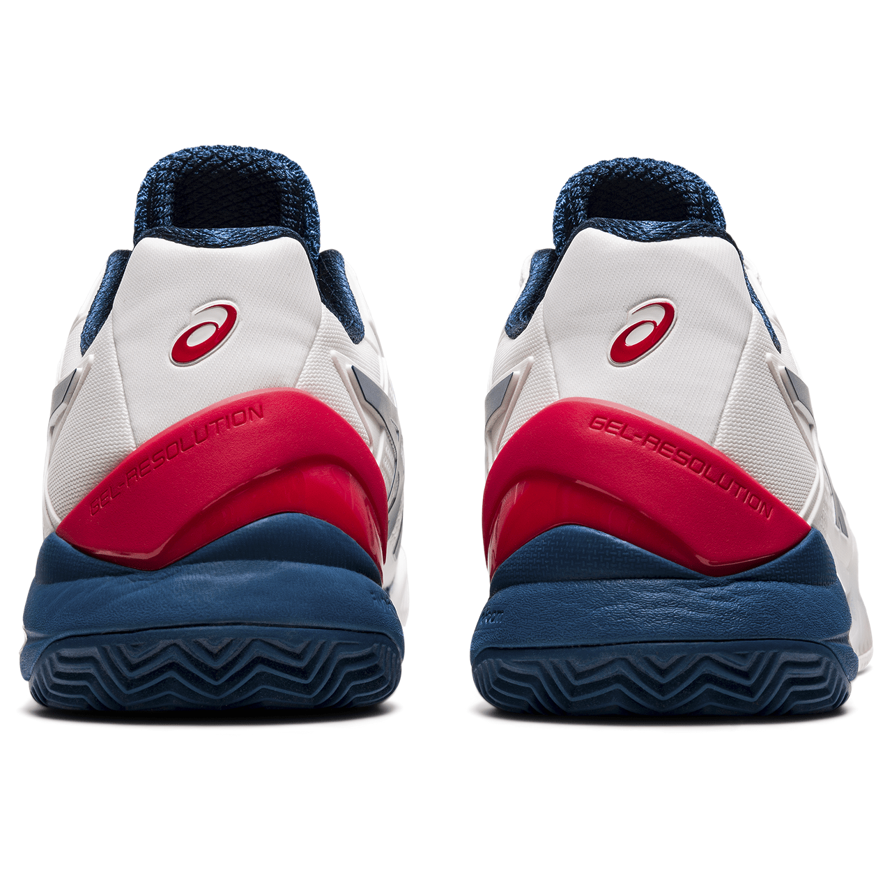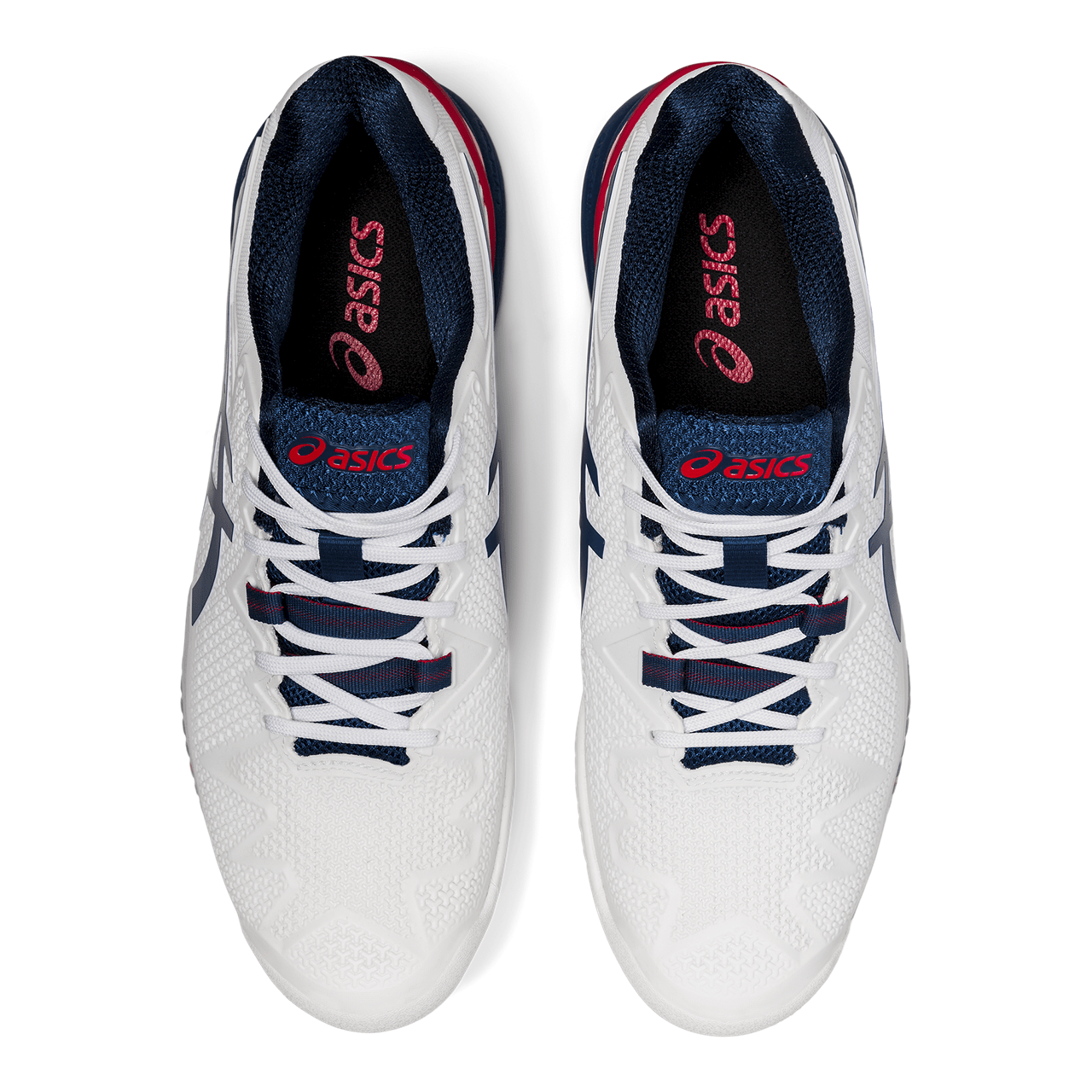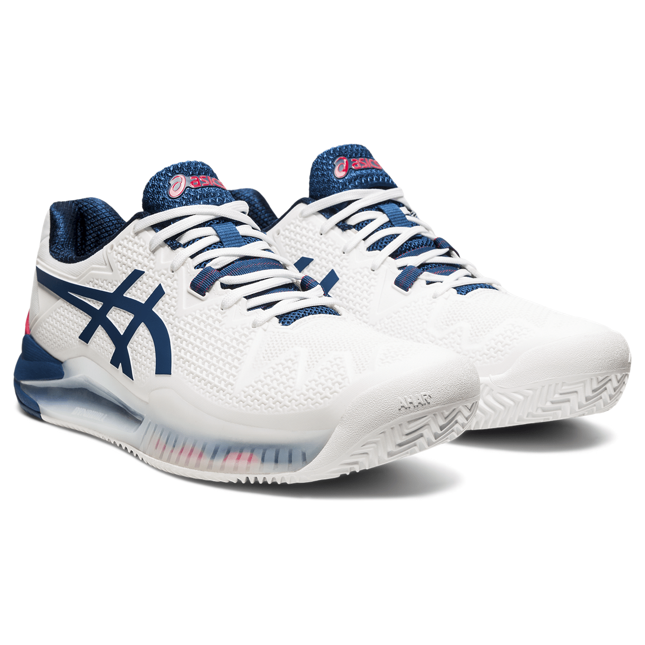 The GEL-RESOLUTION™ 8 CLAY tennis shoe promotes a responsive stride with a close-to-the-court feel. The FLEXION FIT™ upper provides form-fitting support with the integration of DYNAWALL™ technology, which offers added midfoot stability during lateral movements and coast-to-coast coverage.