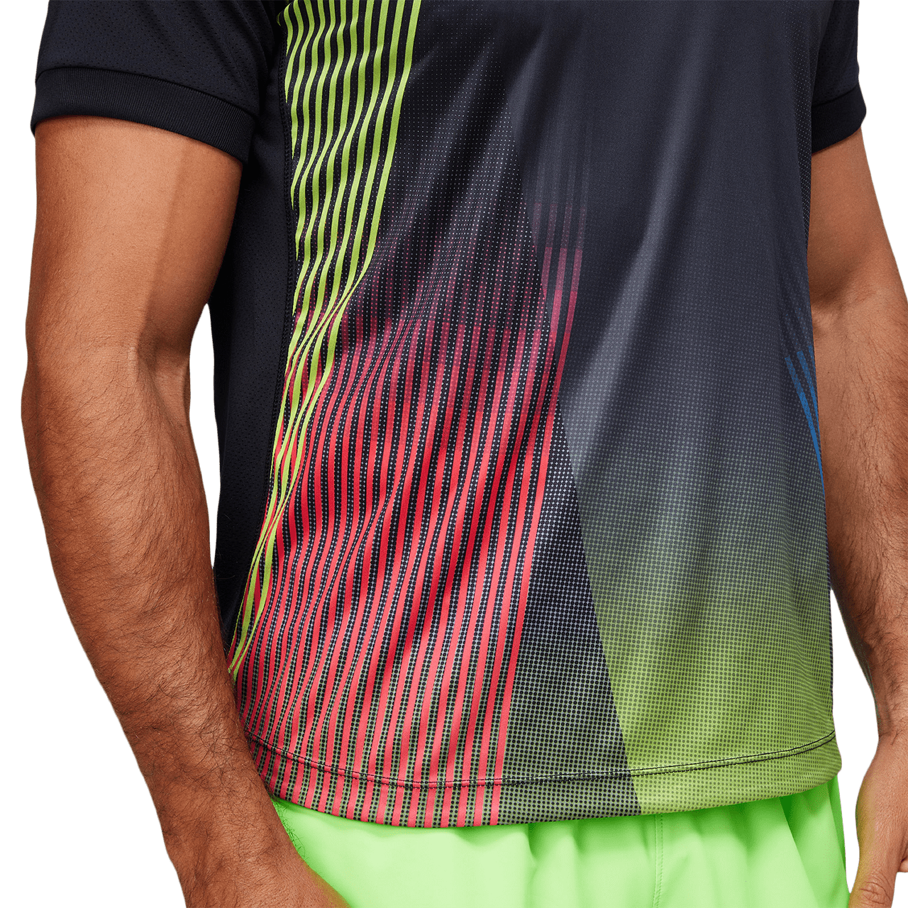 The MATCH GRAPHIC SHORT SLEEVE TOP’s bold colors and graphics are inspired by the lights of New York City at night.